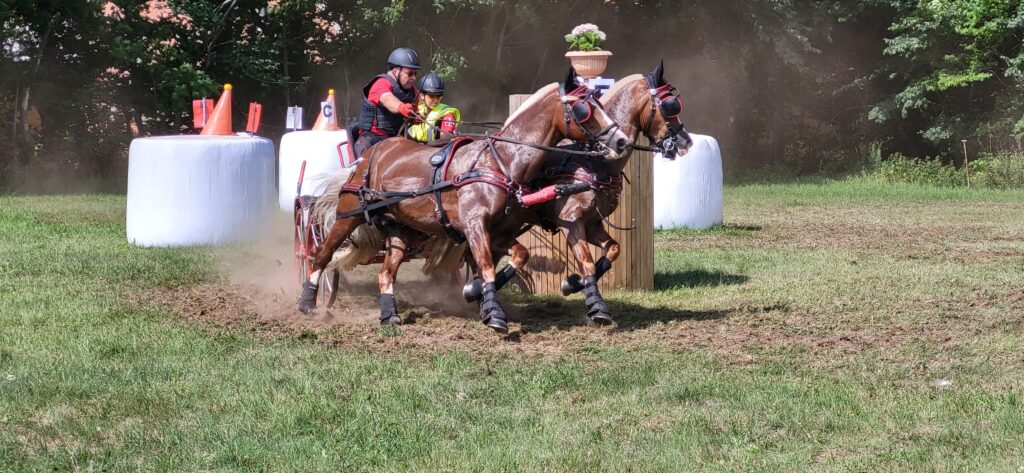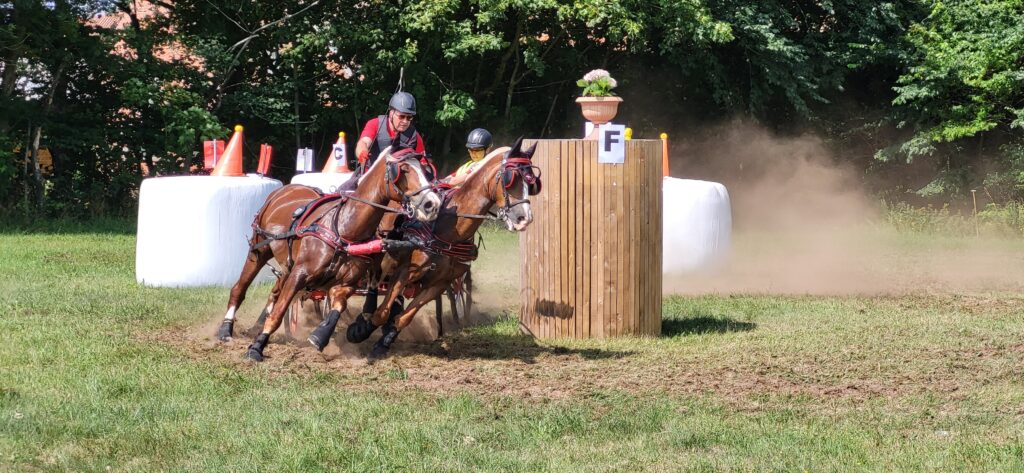 Den sidste weekend i juli afholdt Dansk Køre Forbund/Vendsyssel Køreforening DM i hestevognskørsel. I 2-spand pony klassen deltog 4 kuske. Den ene var Niels Schelde Petersen med to Welsh Cob ponyer. Der blev kørt en fin dressur. Desværre kunne vi ikke være tilstede, men karaktererne viste en fin dressur. Til gengæld så vi maratonkørslen, som var ganske imponerende. Det gik rigtig stærkt, og der var valgt snævre og hurtige ruter.