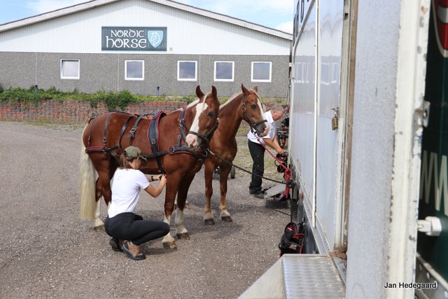 Inden stævnet skal der således pakkes. Det er ofte mad til flere dag, staldtøj, stævnetøj, seler, mad til hestene, vogne og alt muligt andet. Der køres med 2 vogne, 1 såkaldt pæn vogn, som bruges til dressur og kegler og en maratonvogn. Hvis ikke, man som Lene og Niels har en lastbil, kræver det trailere og biler med “jydekrog”.