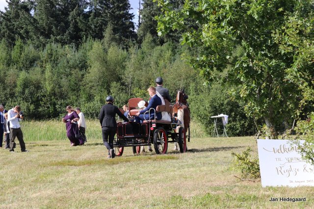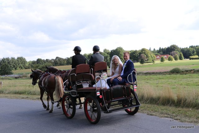 Dette kan imidlertid også bruges til andet. Når nu de store stævner er overstået, skal tiden jo bruges til noget. I Niels’ tilfælde kan man jo så passende køre et brudepar. Det var så, hvad han gjorde den 20. august. Vi havde fået lov til at være med som “flue på væggen” til Regitze og Jonas’ bryllup i det fri, hvor vi måtte tage nogle billeder. Brudeparret havde besluttet, at det skulle foregå i den åbne turvogn, så de havde mulighed for at nyde naturen.
